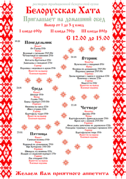 В будни с 12.00 до 15.00 в «Белорусской хате» бывает много гостей… Забронировать Вам столик?